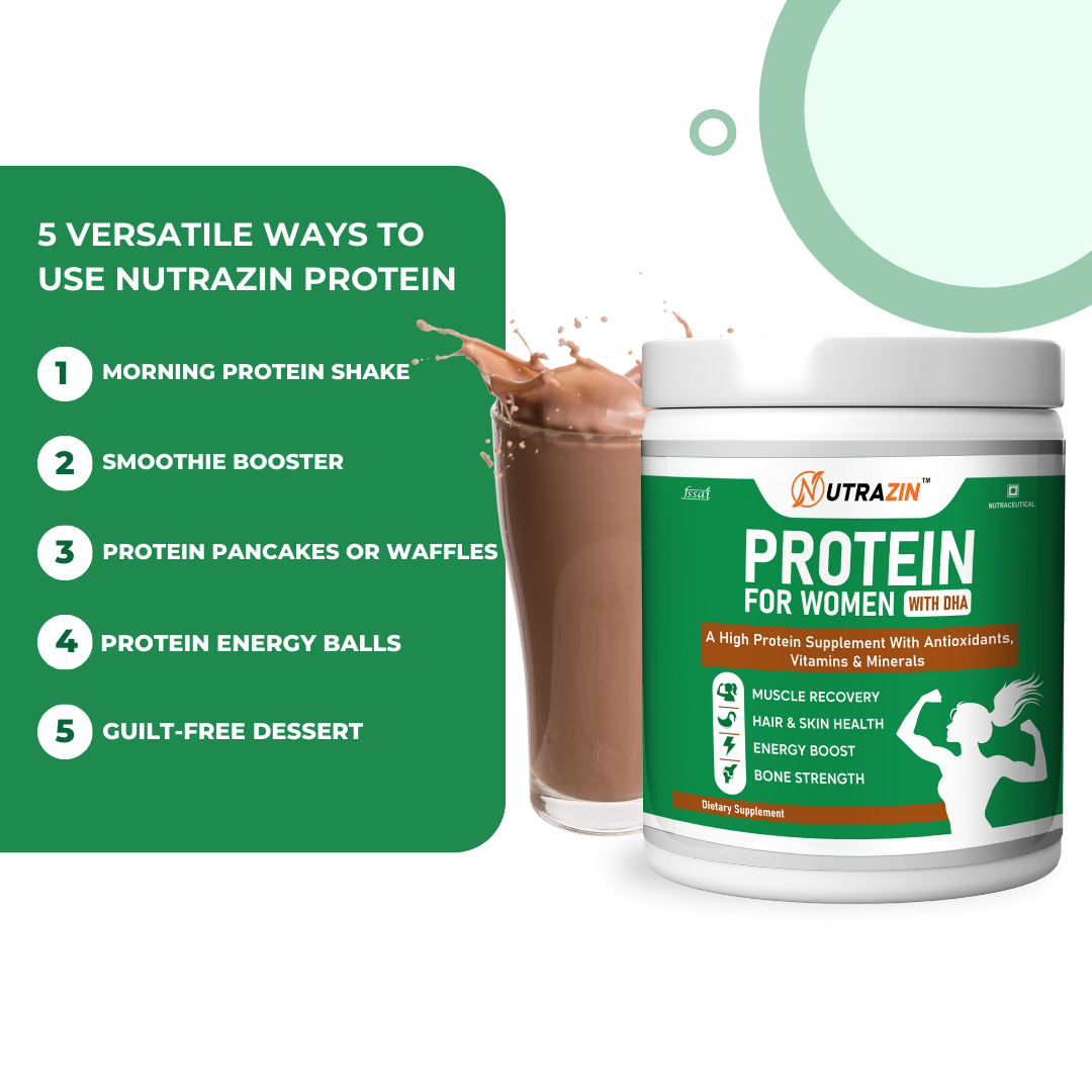 Nutrazin Protein for Women with DHA | High Protein for Muscle Recovery, Hair & Skin Health, Energy & Bone Strength
