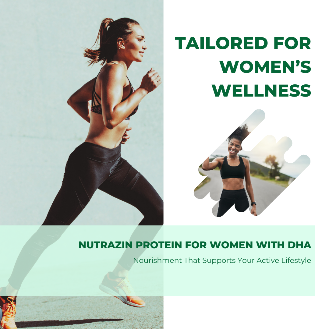 Nutrazin Protein for Women with DHA is a premium women-focused nutritional protein powder designed to support overall health, fitness, and beauty. Fortified with high-quality protein, essential vitamins, minerals, antioxidants, and DHA, this formula promotes stronger muscles, improved bone health, glowing skin, healthy hair, and sustained daily energy.
